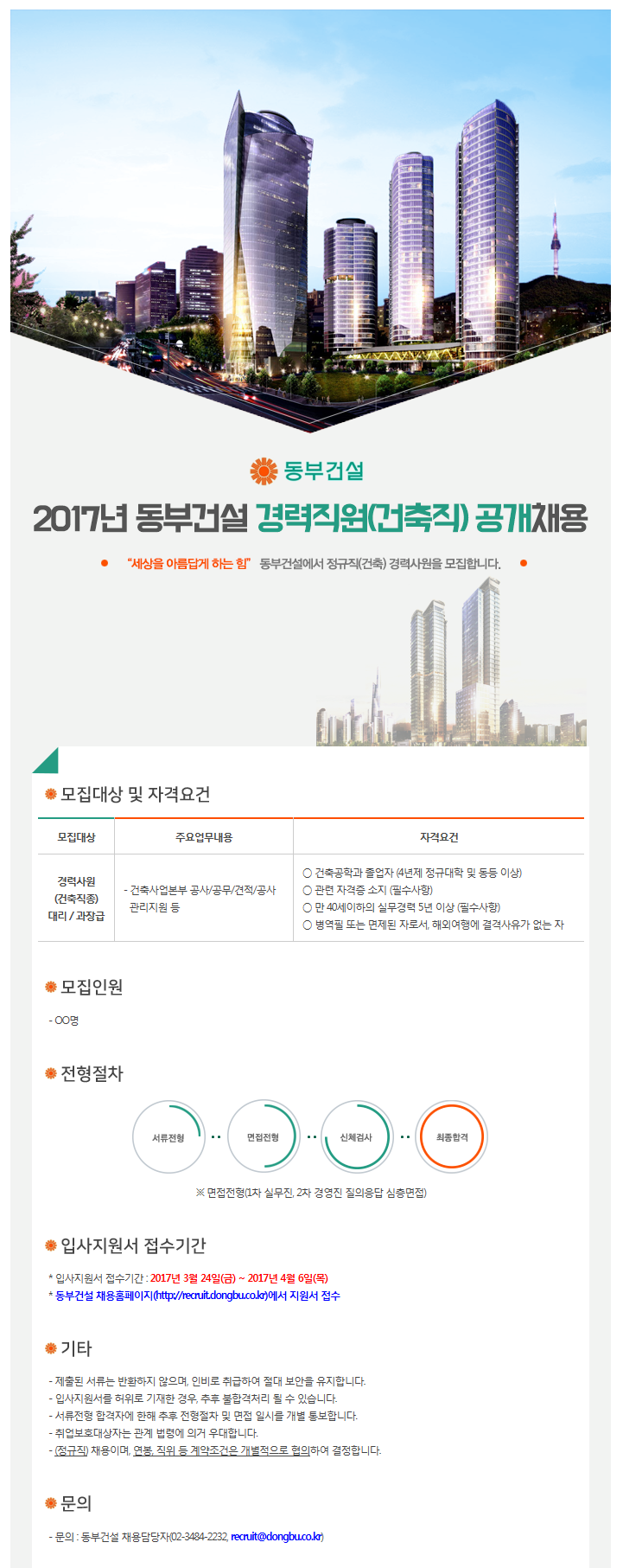 * µ¿ºÎ°Ç¼³ ä¿ëȨÆäÀÌÁö(http://recruit.dongbu.co.kr)¿¡¼ Áö¿ø¼ Á¢¼ö