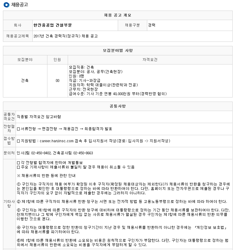 ¡Ø ±âŸ ÀÚ¼¼ÇÑ »çÇ×Àº ÇÑÁøÁß°ø¾÷ ȨÆäÀÌÁö(https://career.hanjinsc.com)¸¦ Âü°íÇϽñ⠹ٶø´Ï´Ù