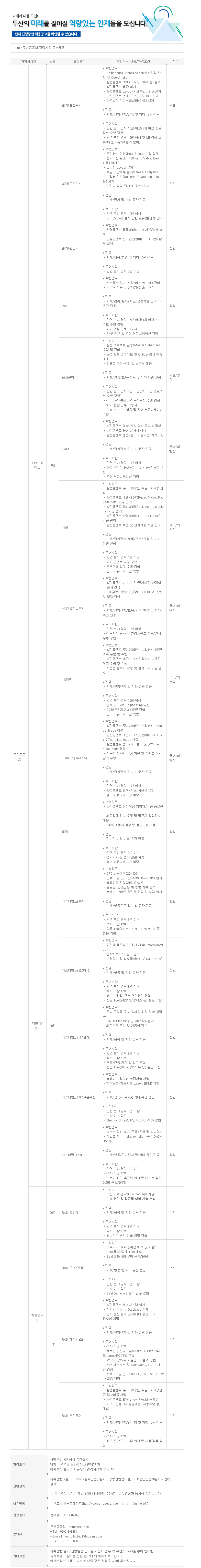 ¡Ø ±âŸ ÀÚ¼¼ÇÑ »çÇ×Àº µÎ»ê±×·ì ä¿ëȨÆäÀÌÁö(http://career.doosan.com)¸¦ Âü°íÇϽñ⠹ٶø´Ï´Ù.