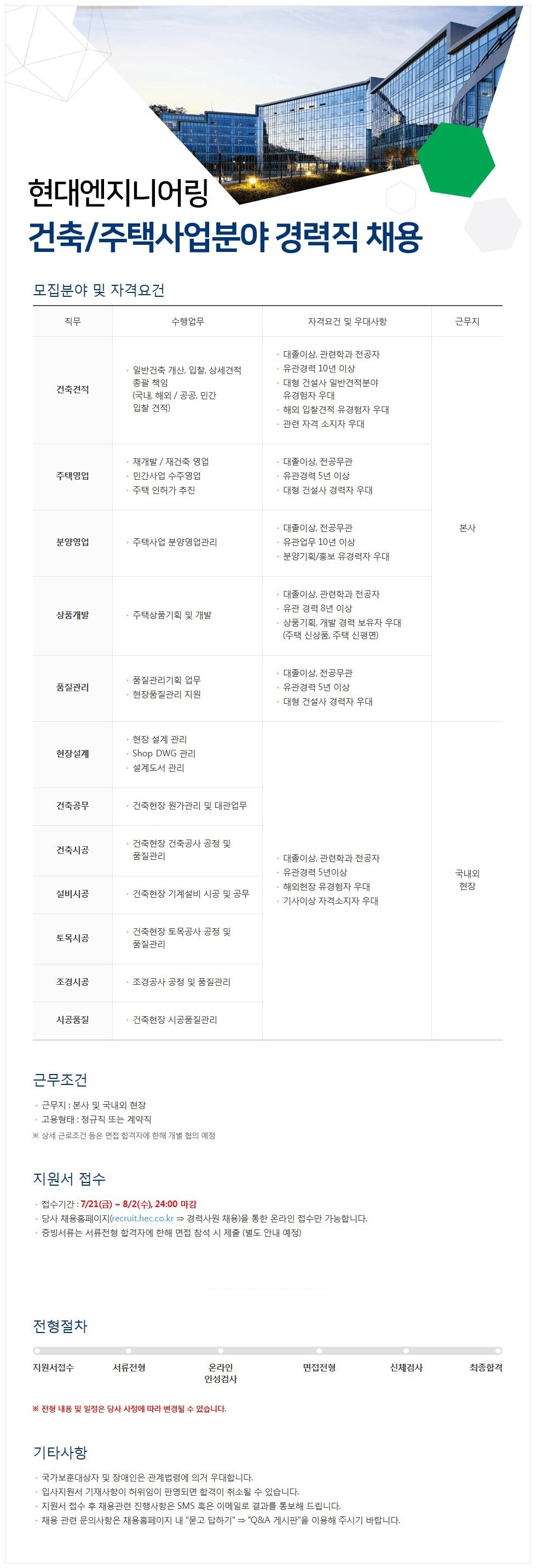 ¡Ø ±âŸ ÀÚ¼¼ÇÑ »çÇ×Àº ȨÆäÀÌÁö(https://recruit.hec.co.kr/)¸¦ Âü°íÇϽñ⠹ٶø´Ï´Ù.