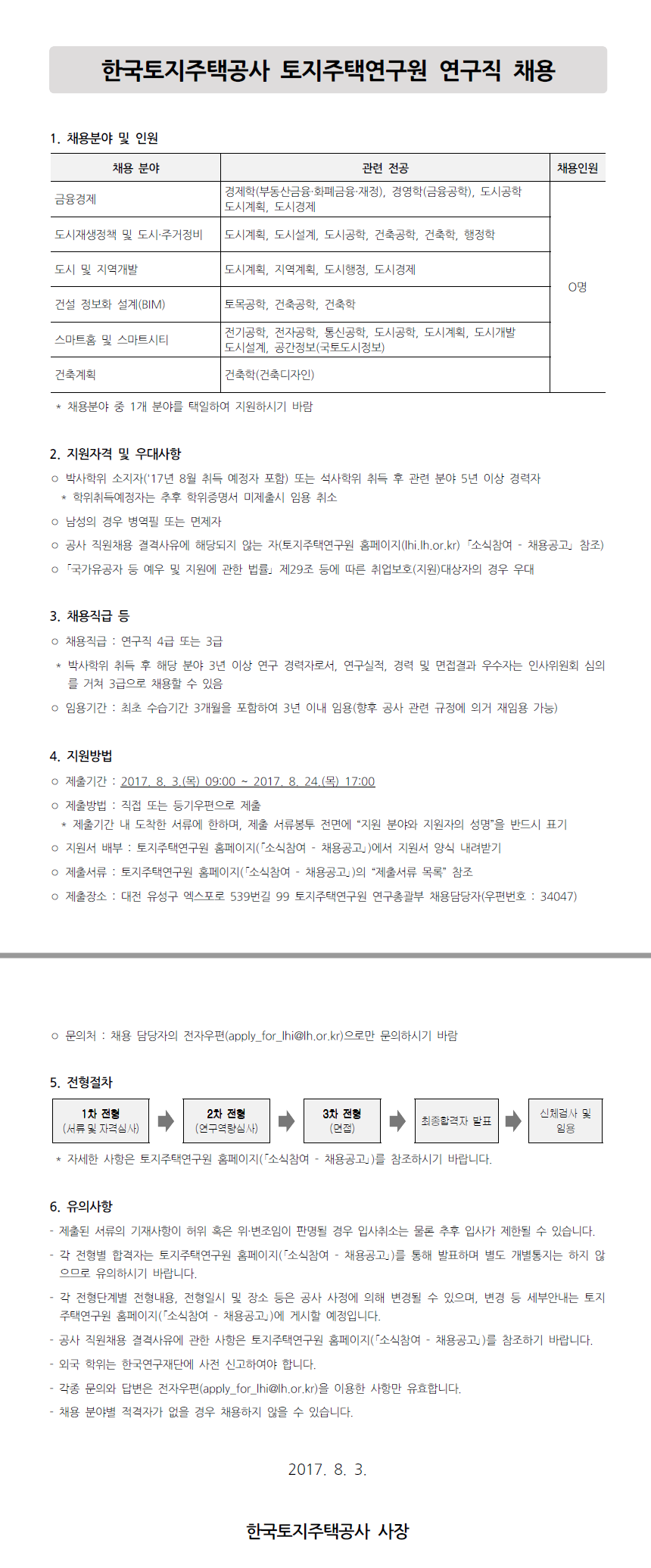¡Ø ±âŸ ÀÚ¼¼ÇÑ »çÇ×Àº ¿¬±¸¿ø ȨÆäÀÌÁö(lhi.lh.or.kr/notice/employ_list.asp?Mcode=2 )¸¦ Âü°íÇϽñ⠹ٶø´Ï´Ù.