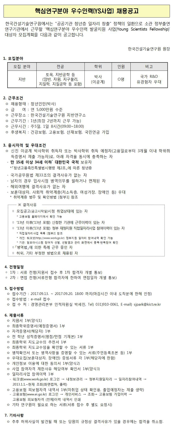 [Çѱ¹°Ç¼³±â¼ú¿¬±¸¿ø]Çٽɿ¬±¸ºÐ¾ß ¿ì¼öÀηÂ(YS»ç¾÷) ä¿ë°ø°í(~9.20)