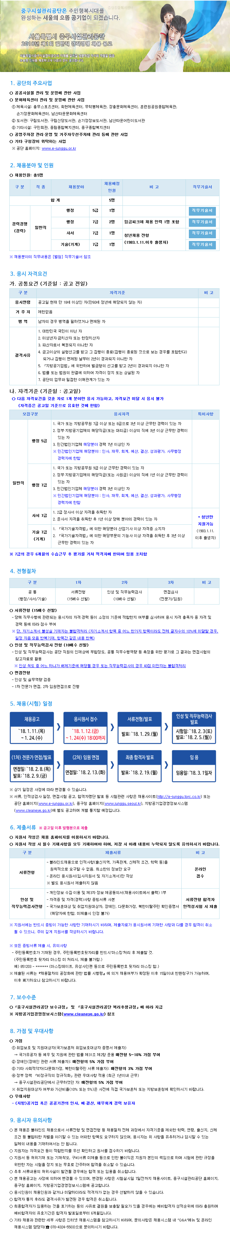 [¼¿ïƯº°½Ã Áß±¸½Ã¼³°ü¸®°ø´Ü]2018³â Á¦1ȸ ÀϹÝÁ÷ °æ·Â°æÀï ä¿ë °ø°í(~1.24)
