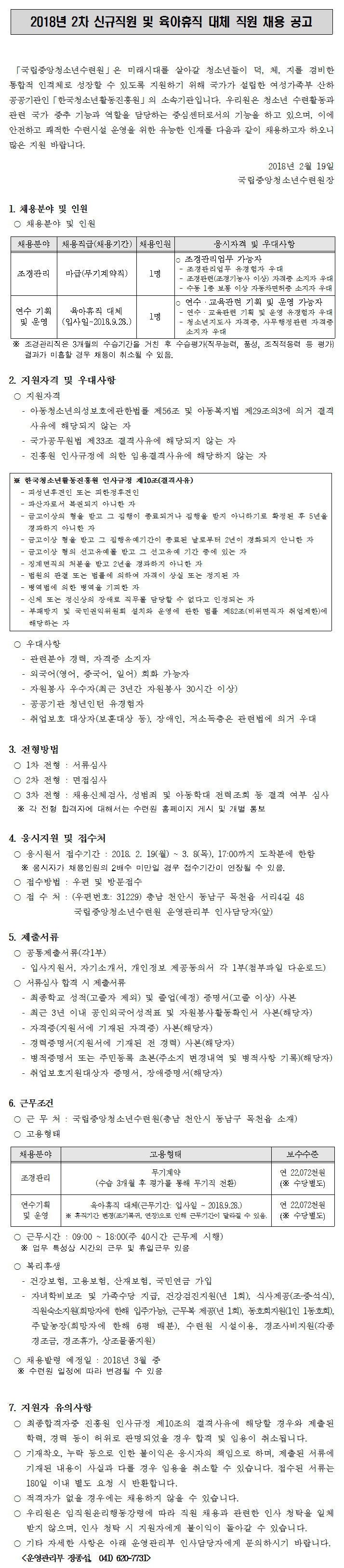 [±¹¸³Áß¾Óû¼Ò³â¼ö·Ã¿ø]2018³â 2Â÷ ½Å±ÔÁ÷¿ø ¹× À°¾ÆÈÞÁ÷ ´ëü Á÷¿ø ä¿ë °ø°í(~3.8)