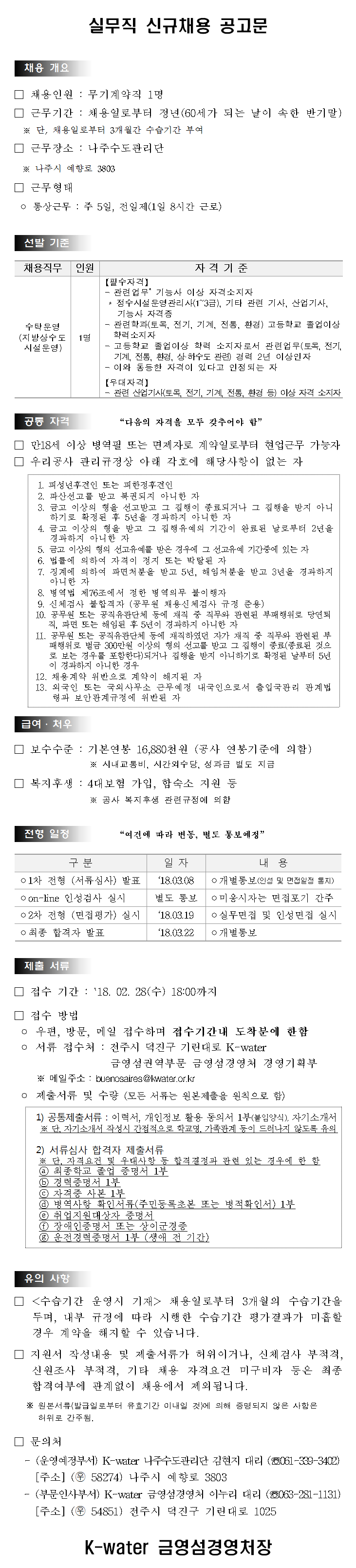 Á¦¸ñ [Çѱ¹¼öÀÚ¿ø°ø»ç]³ªÁÖ¼öµµ°ü¸®´Ü ½Ç¹«Á÷ ä¿ë °ø°í(~2.28)