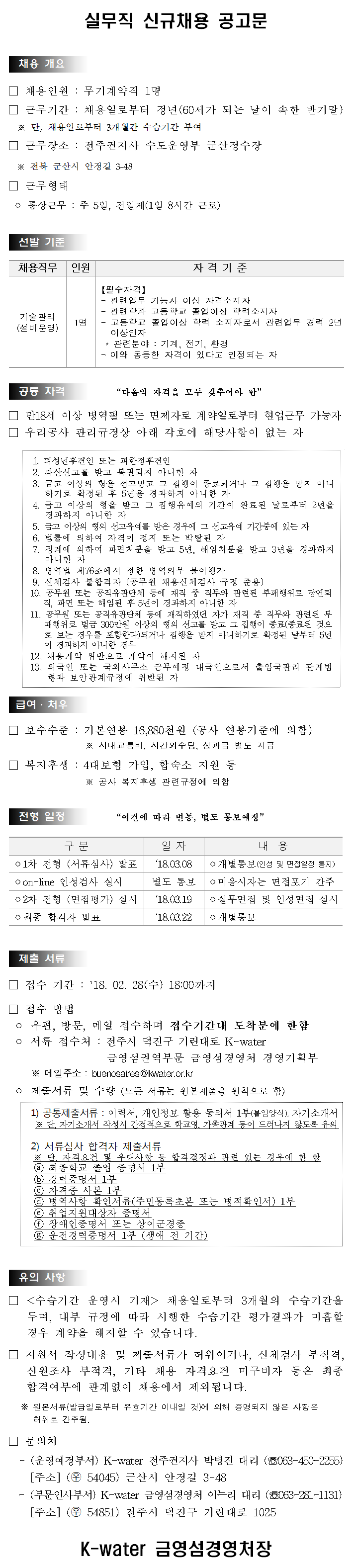 Á¦¸ñ [Çѱ¹¼öÀÚ¿ø°ø»ç]ÀüÁÖ±ÇÁö»ç ½Ç¹«Á÷ ä¿ë °ø°í(~2.28)