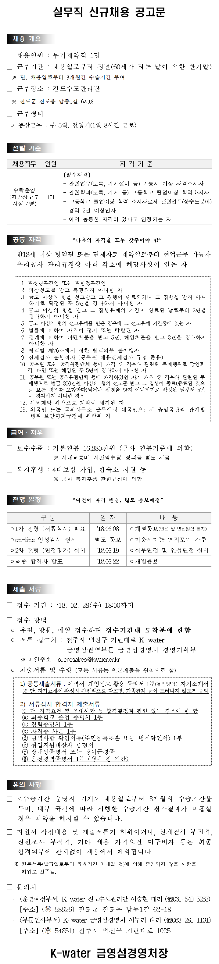 Á¦¸ñ [Çѱ¹¼öÀÚ¿ø°ø»ç]Áøµµ¼öµµ°ü¸®´Ü ½Ç¹«Á÷ ä¿ë °ø°í(~2.28)
