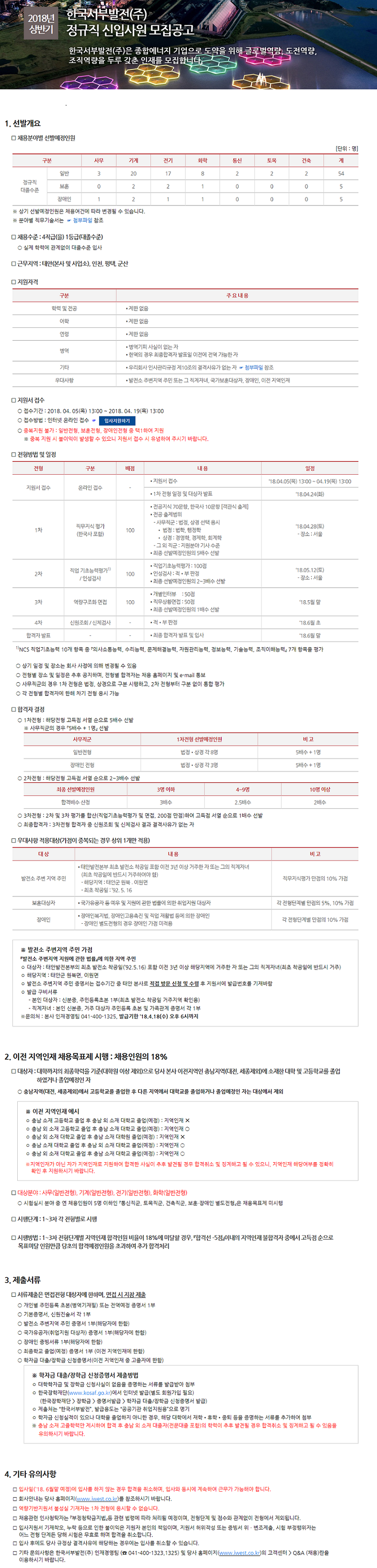 [Çѱ¹¼ºÎ¹ßÀü(ÁÖ)]2018³âµµ »ó¹Ý±â Á¤±ÔÁ÷ ½ÅÀÔ»ç¿ø ¸ðÁý°ø°í(~4.19)