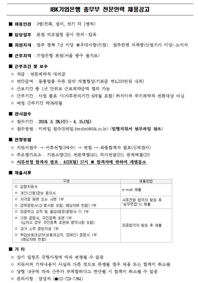 [IBK±â¾÷ÀºÇà] Ãѹ«ºÎ Àü¹®Àη ä¿ë°ø°í(~4.15)