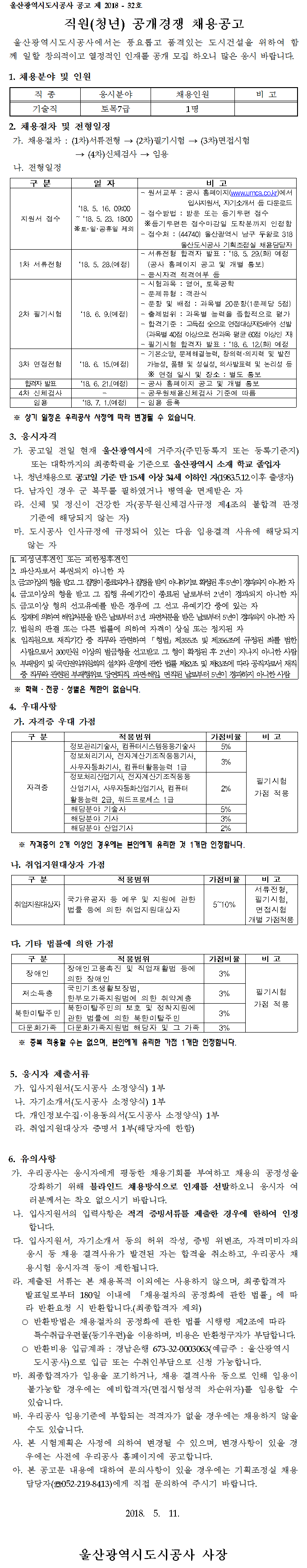 [¿ï»ê½Ãµµ½Ã°ø»ç]2018³â »ó¹Ý±â Á÷¿ø(û³â) °ø°³°æÀï ä¿ë°ø°í(~5.23)