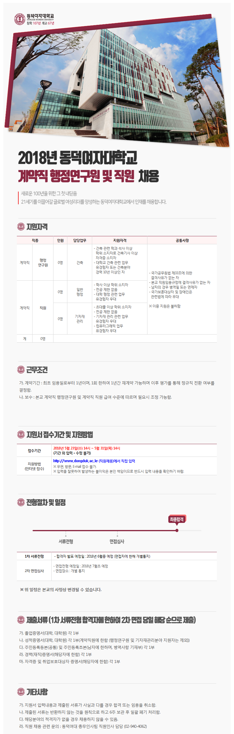 [µ¿´ö¿©ÀÚ´ëÇб³]2018³â °è¾àÁ÷ ÇàÁ¤¿¬±¸¿ø ¹× Á÷¿ø ä¿ë°ø°í(~5.31)