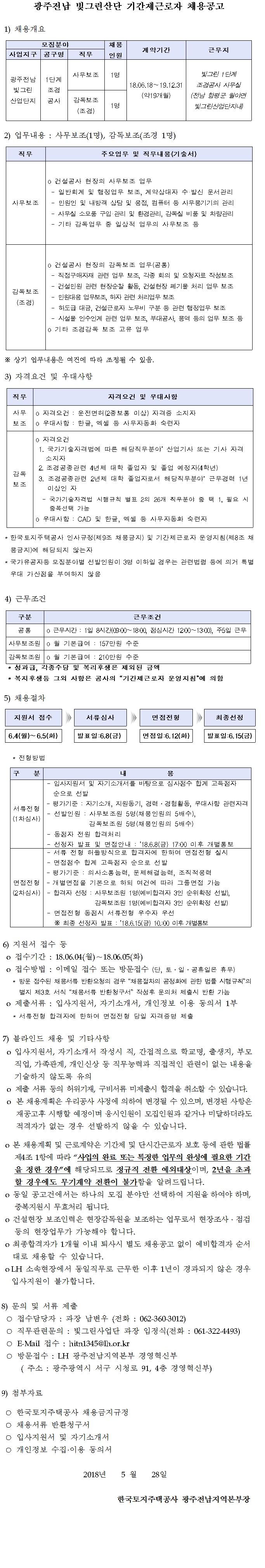 [Çѱ¹ÅäÁöÁÖÅðø»ç]±¤ÁÖÀü³² ºû±×¸°»ê¾÷´ÜÁö ±â°£Á¦±Ù·ÎÀÚ Ã¤¿ë°ø°í(~6.5)