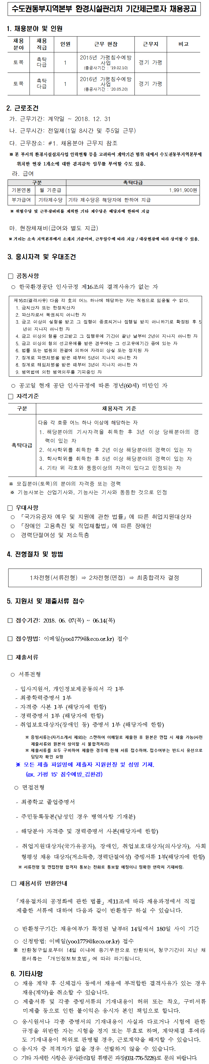 [Çѱ¹È¯°æ°ø´Ü]¼öµµ±Çµ¿ºÎÁö¿ªº»ºÎ ȯ°æ½Ã¼³°ü¸®Ã³ ±â°£Á¦±Ù·ÎÀÚ(ÃËŹ) ä¿ë°ø°í(~6.14)
