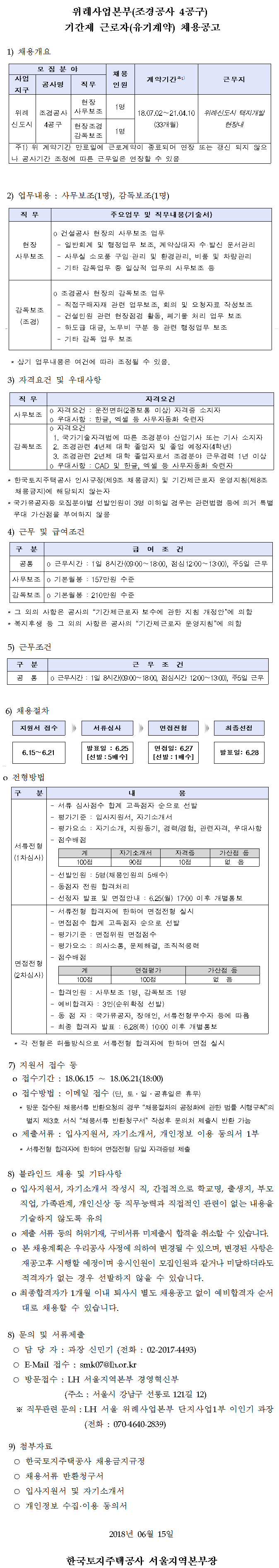 [Çѱ¹ÅäÁöÁÖÅðø»ç]À§·Ê»ç¾÷º»ºÎ(Á¶°æ°ø»ç 4°ø±¸) ±â°£Á¦ ±Ù·ÎÀÚ(À¯±â°è¾à) ä¿ë°ø°í(~6.21)