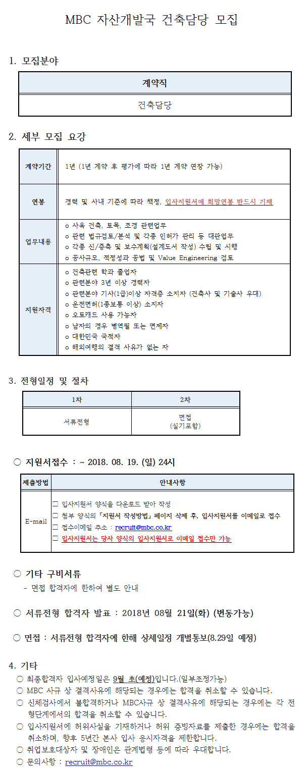 [¹®È¹æ¼Û]MBC Àڻ갳¹ß±¹ °ÇÃà´ã´ç ¸ðÁý °ø°í(~8.19)