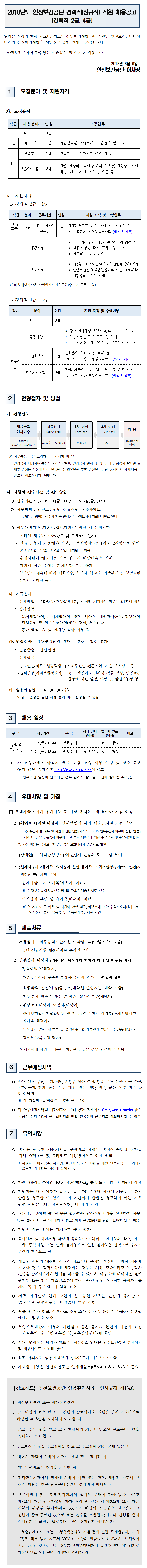 [Çѱ¹»ê¾÷¾ÈÀüº¸°Ç°ø´Ü]2018³âµµ °æ·ÂÁ÷(Á¤±ÔÁ÷) Á÷¿ø ä¿ë°ø°í(~8.24)