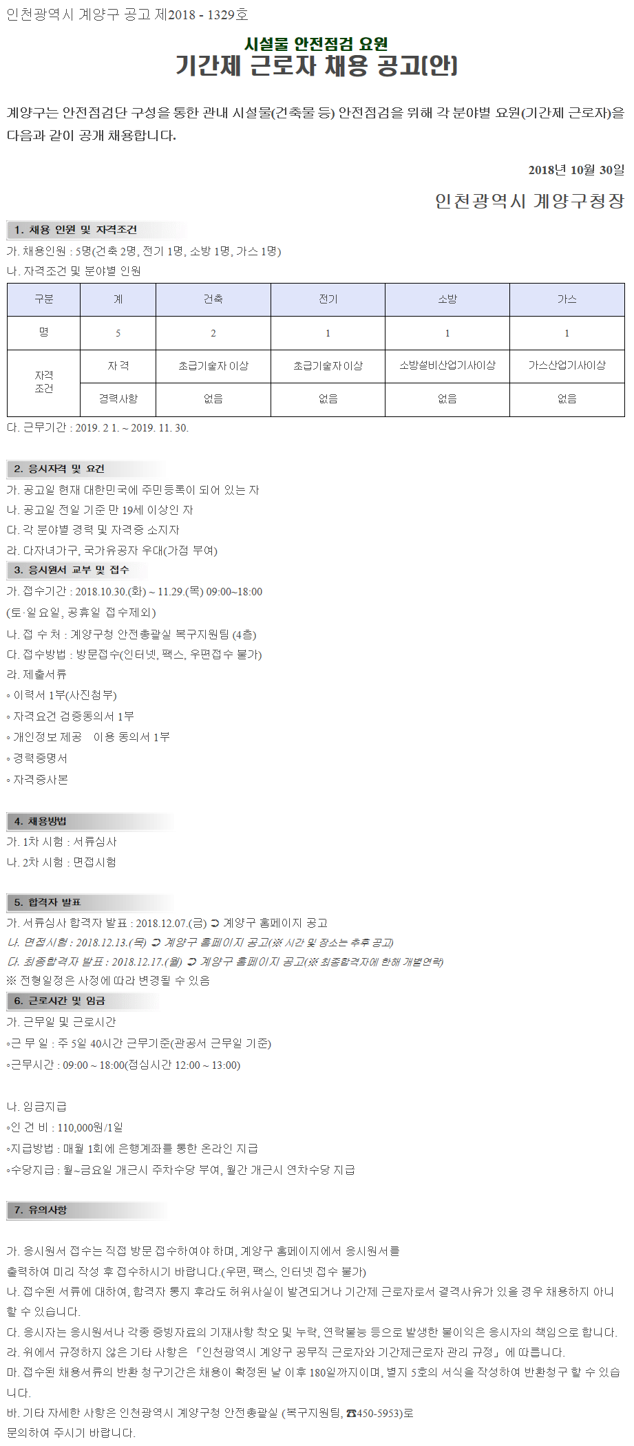 [ÀÎõ±¤¿ª½Ã°è¾ç±¸Ã»] ½Ã¼³¹° ¾ÈÀüÁ¡°Ë ¿ä¿ø ±â°£Á¦ ±Ù·ÎÀÚ Ã¤¿ë°ø°í(~11.29)