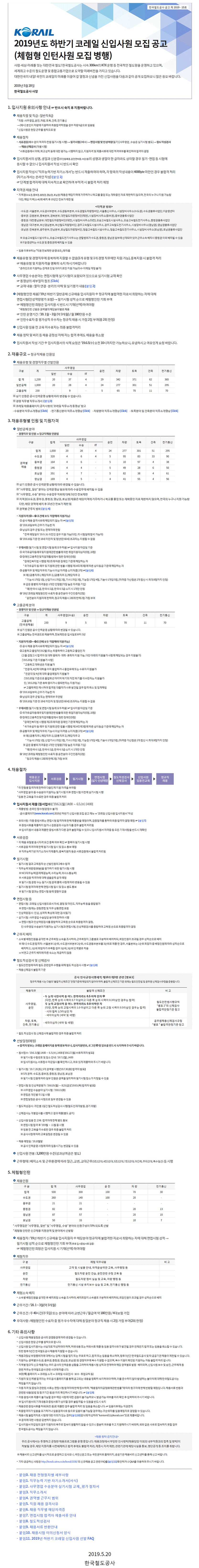 [Çѱ¹Ã¶µµ°ø»ç] 2019³âµµ ÇϹݱâ ÄÚ·¹ÀÏ ½ÅÀÔ»ç¿ø ¸ðÁý °ø°í(~6.5)