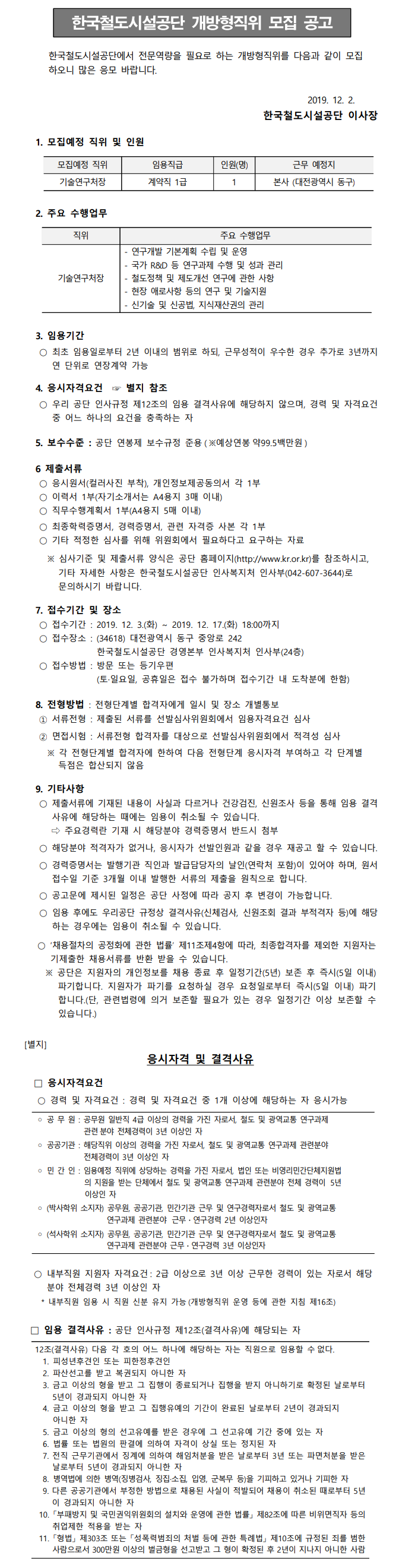 [Çѱ¹Ã¶µµ½Ã¼³°ø´Ü] °³¹æÇüÁ÷À§ ¸ðÁý °ø°í(~12.17)