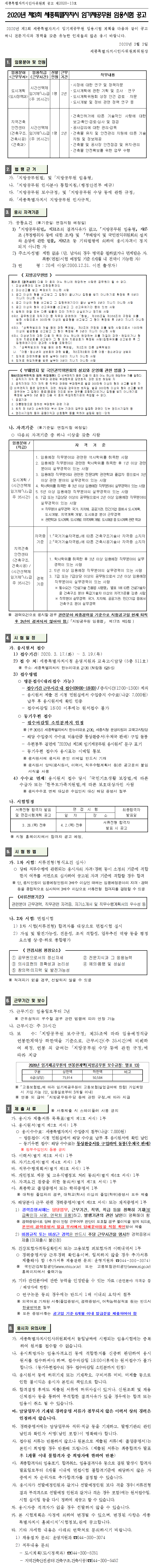 [¼¼Á¾Æ¯º°ÀÚÄ¡½Ãû] 2020³â Á¦3ȸ ¼¼Á¾Æ¯º°ÀÚÄ¡½Ã ÀÓ±âÁ¦°ø¹«¿ø ÀÓ¿ë½ÃÇè °ø°í(~3.19)