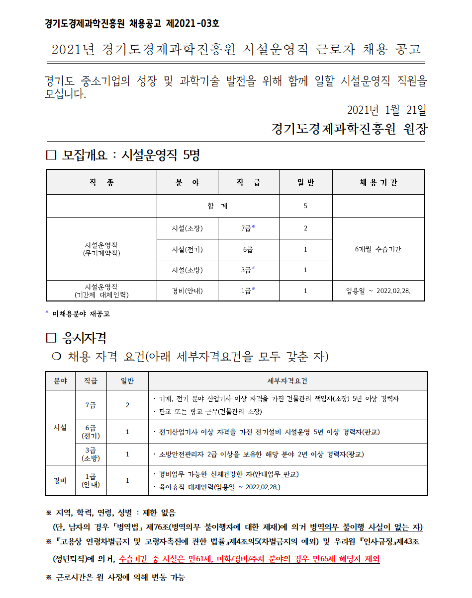 [°æ±âµµ°æÁ¦°úÇÐÁøÈï¿ø] 2021³â °æ±âµµ°æÁ¦°úÇÐÁøÈï¿ø ½Ã¼³¿î¿µÁ÷(Àü±â, ¼Ò¹æ) °æ·ÂÁ÷ ä¿ë °ø°í (~2.3)