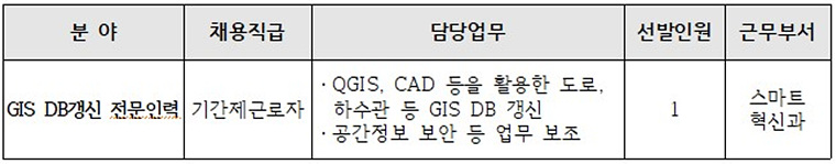 [ÀÎõ½Ã ¿¬¼ö±¸Ã»] GIS DB°»½Å Àü¹®Àη ±â°£Á¦±Ù·ÎÀÚ Ã¤¿ë (~2026.1.21.)