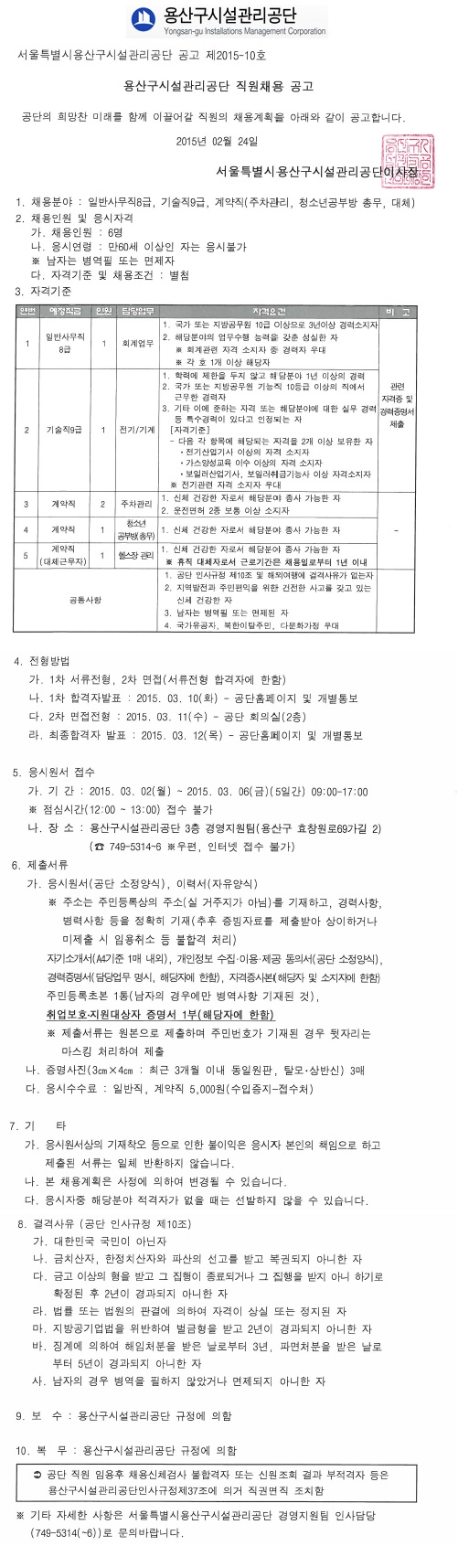 Á¦¸ñ [¿ë»ê±¸½Ã¼³°ü¸®°ø´Ü] Á¤±ÔÁ÷ °æ·Â»ç¿ø(±â°è/Àü±â) ä¿ë°ø°í( ~3.06)