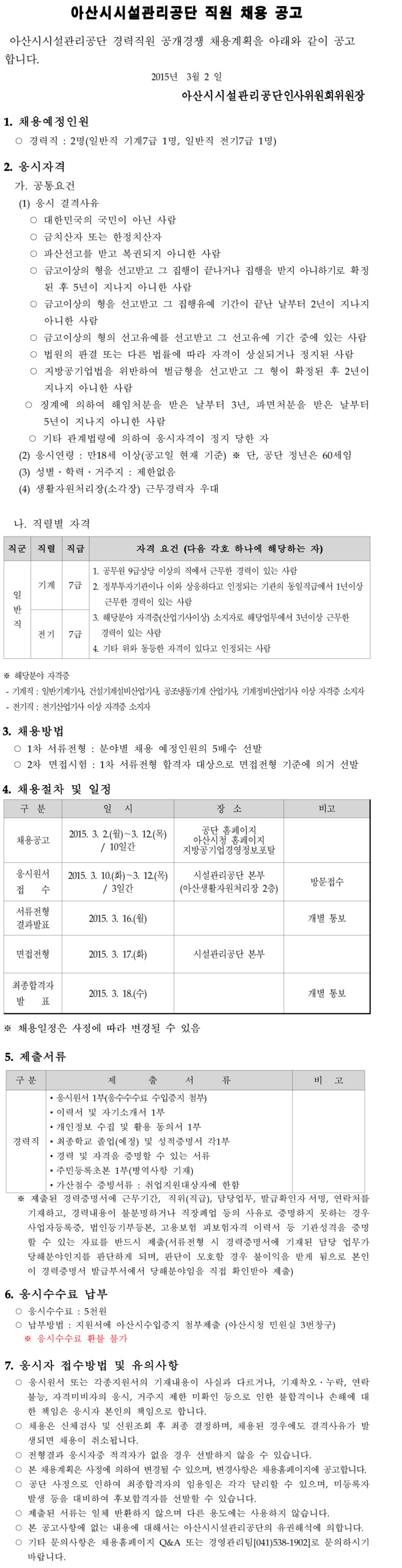 Á¦¸ñ [¾Æ»ê½Ã½Ã¼³°ü¸®°ø´Ü] Á¤±ÔÁ÷ °æ·Â»ç¿ø(±â°è/Àü±â) ä¿ë°ø°í ( ~3.12)