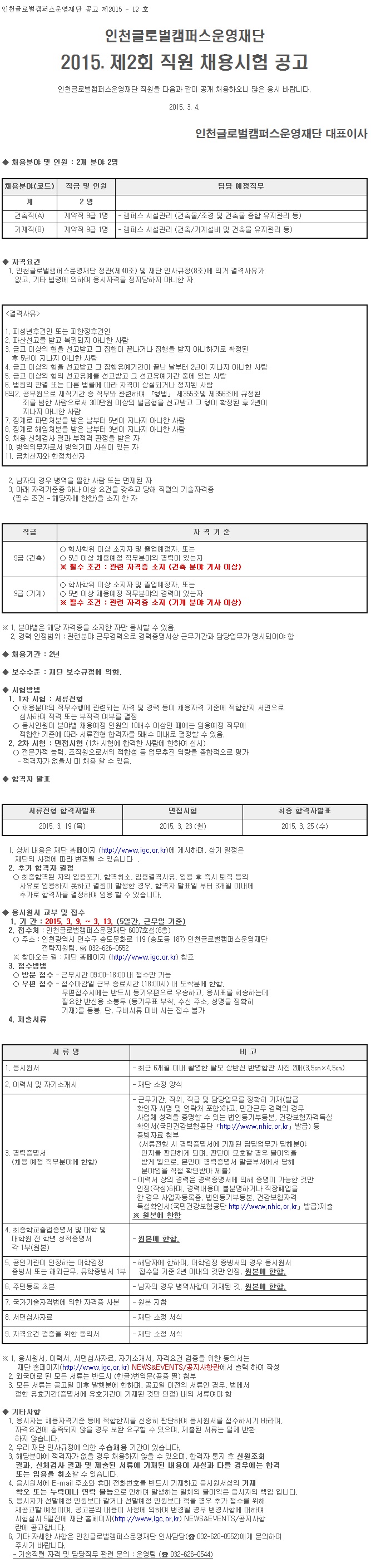 Á¦¸ñ [ÀÎõ±Û·Î¹úÄ·ÆÛ½º]Á÷¿ø ä¿ë (°ÇÃà/±â°è) °ø°í ( ~3.13)