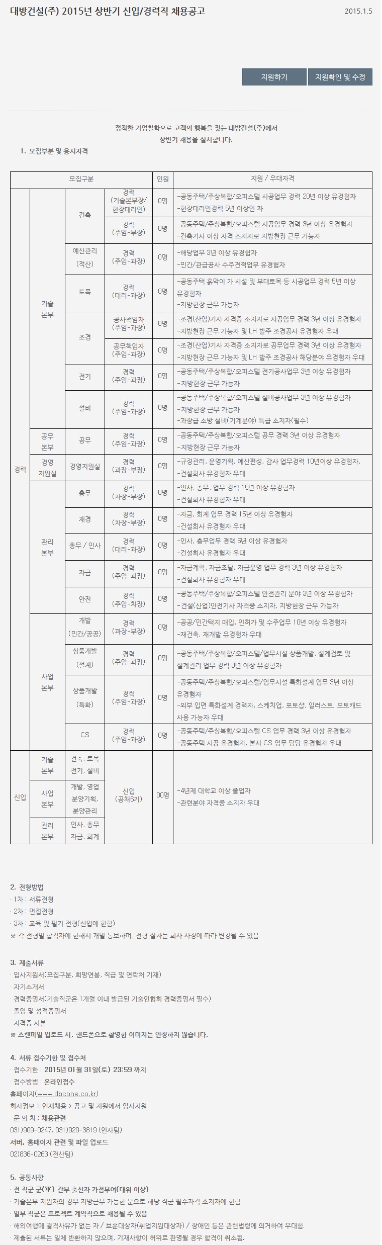 [´ë¹æ°Ç¼³(ÁÖ)] 2015³â »ó¹Ý±â ½ÅÀÔ/°æ·ÂÁ÷ ä¿ë°ø°í( ~1.31)