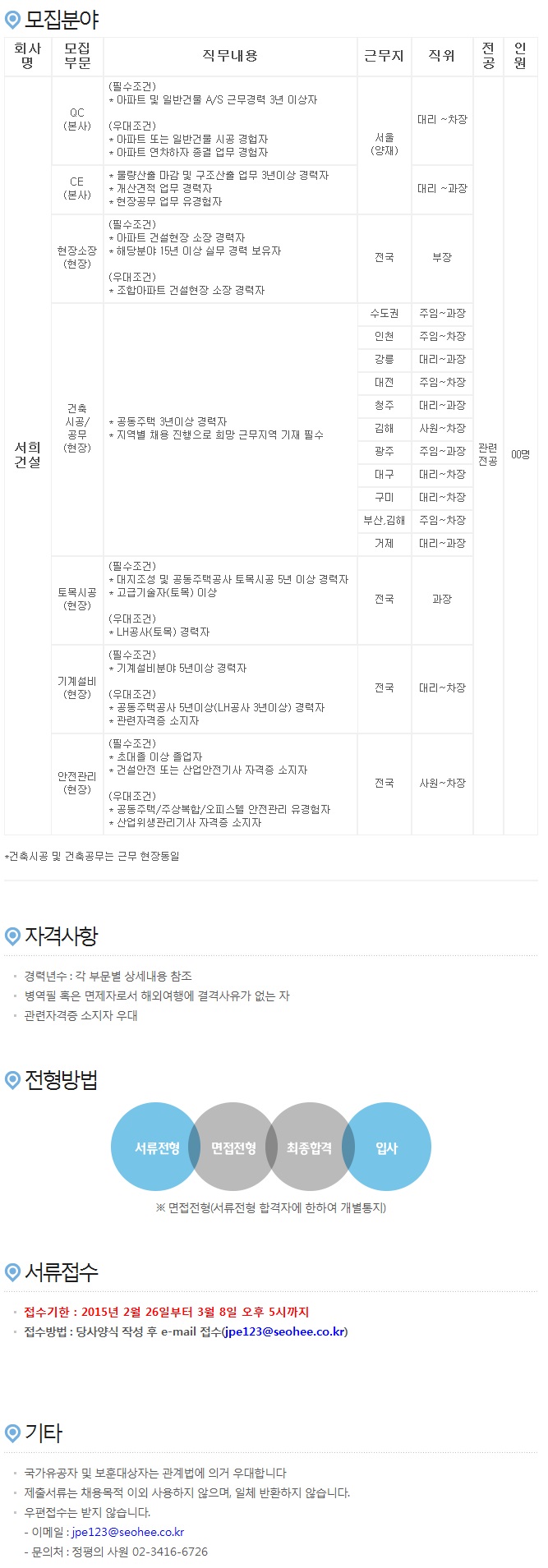 Á¦¸ñ [¼­Èñ°Ç¼³] °¢ ºÎ¹® °æ·Â»ç¿ø ¸ðÁý ( ~3.08)