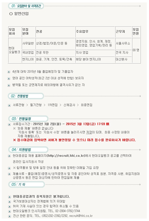 [Çö´ë¿ÀÀϹðÅ©] »ó¹Ý±â ´ëÁ¹½ÅÀÔ»ç¿ø( Åä¸ñ/°ÇÃà/¾ÈÀü/±â°è) ¸ðÁý ( ~3.13)