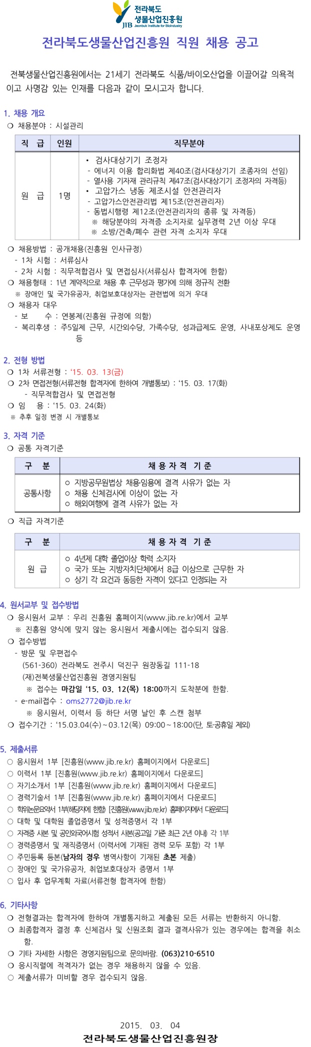 Á¦¸ñ [Àü¶óºÏµµ»ý¹°»ê¾÷ÁøÈï¿ø] Á¤±ÔÁ÷ °æ·Â»ç¿ø(½Ã¼³°ü¸®) ä¿ë ( ~3.13)