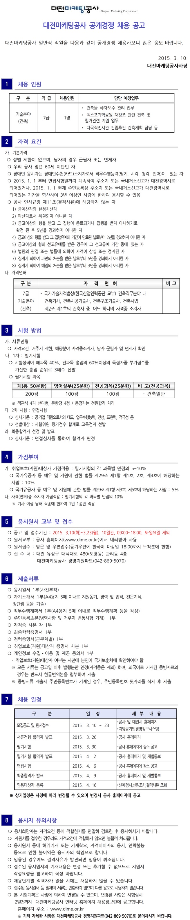 [´ëÀü¸¶ÄÉÆÃ°ø»ç] Á¤±ÔÁ÷ ½ÅÀÔ»ç¿ø(°ÇÃà) ä¿ë°ø°í ( ~3.23)