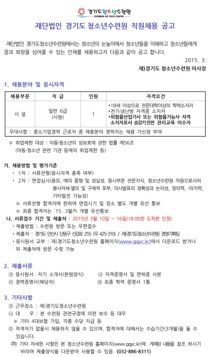 [°æ±âµµÃ»¼Ò³â¼ö·Ã¿ø] Á¤±ÔÁ÷ ½ÅÀÔ»ç¿ø(½Ã¼³) ä¿ë°ø°í ( ~3.16)