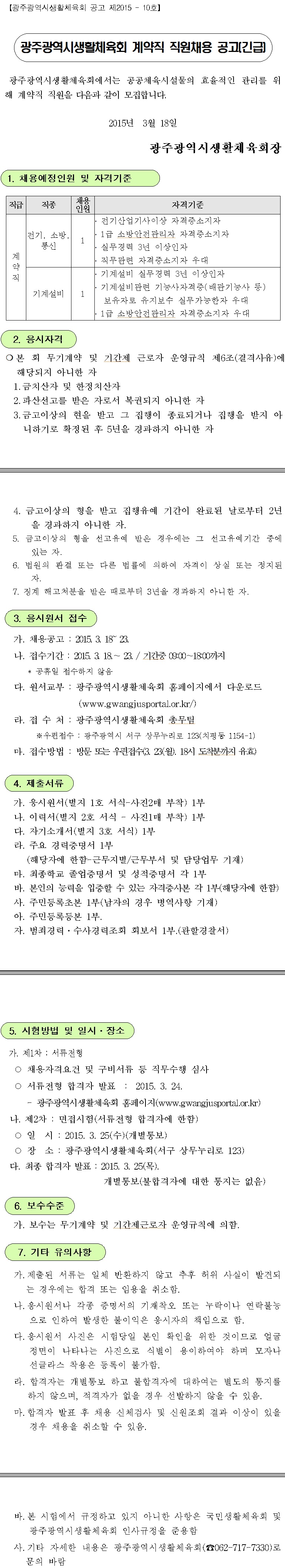 Á¦¸ñ [±¤ÁÖ±¤¿ª½Ã»ýȰüÀ°È¸] °è¾àÁ÷(±â°è/Àü±â,¼Ò¹æ,Åë½Å) Á÷¿øÃ¤¿ë °ø°í ( ~3.23)