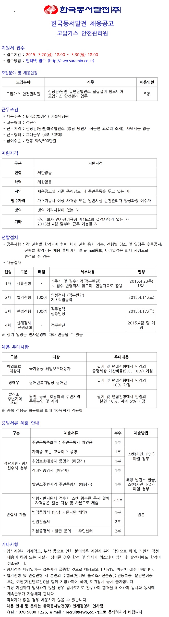 [Çѱ¹µ¿¼¹ßÀü] Á¤±ÔÁ÷ ½ÅÀÔ»ç¿ø(¾ÈÀü°ü¸®¿ø) ä¿ë°ø°í ( ~3.30)