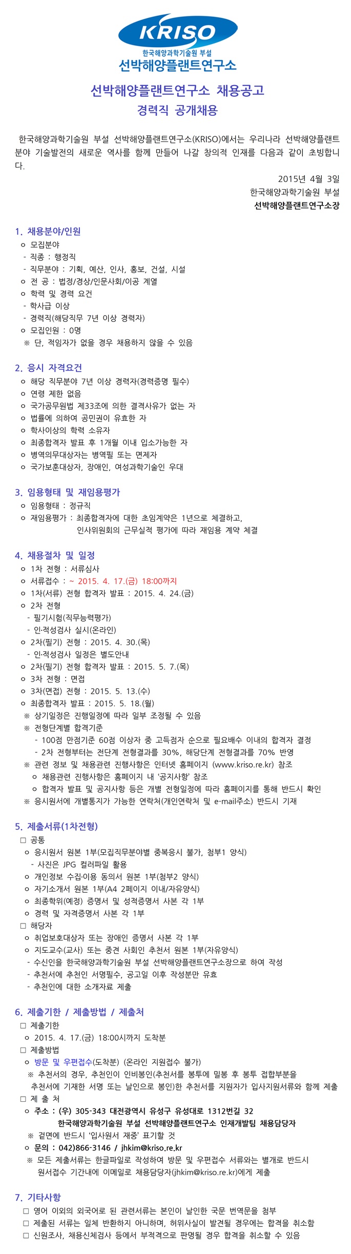[¼±¹ÚÇØ¾çÇ÷£Æ®¿¬±¸¼Ò] Á¤±ÔÁ÷ °æ·Â»ç¿ø(ÇàÁ¤) ä¿ë°ø°í ( ~4.17)