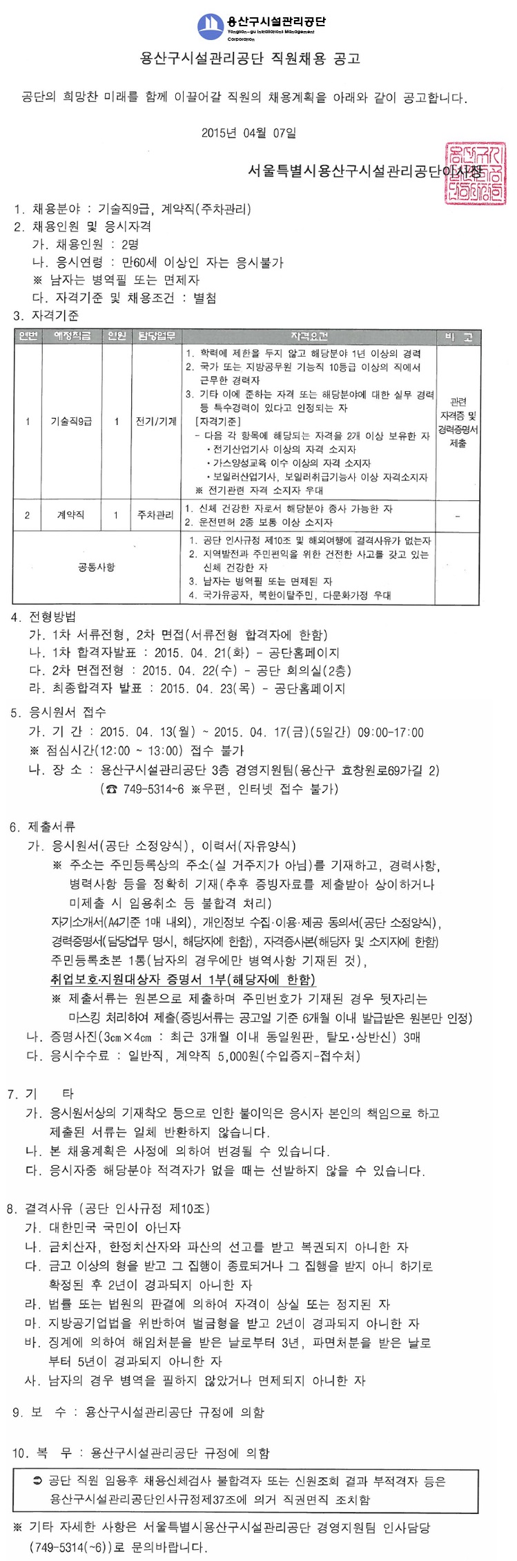 [¿ë»ê±¸½Ã¼³°ü¸®°ø´Ü] Á¤±ÔÁ÷ °æ·Â»ç¿ø(Àü±â/±â°è) ä¿ë°ø°í ( ~4.17)