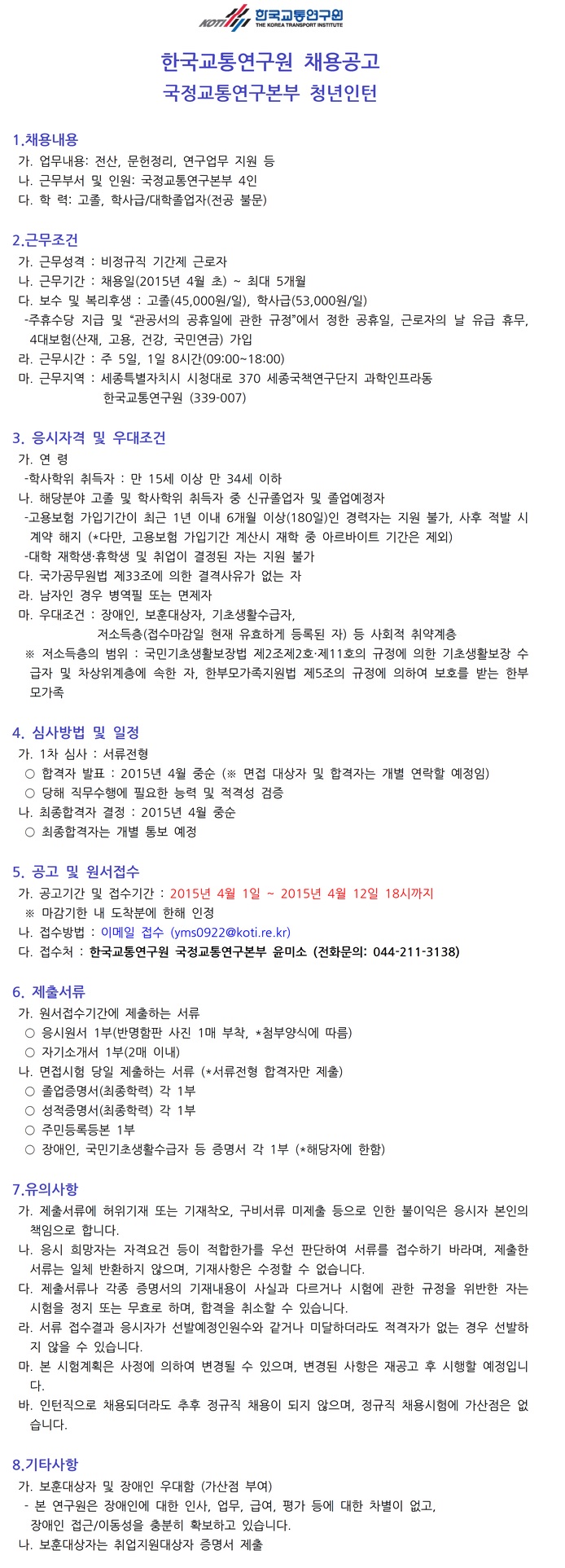 [Çѱ¹±³Å뿬±¸¿ø] û³âÀÎÅÏ(Àü»ê/ÇàÁ¤) ä¿ë°ø°í ( ~4.12)