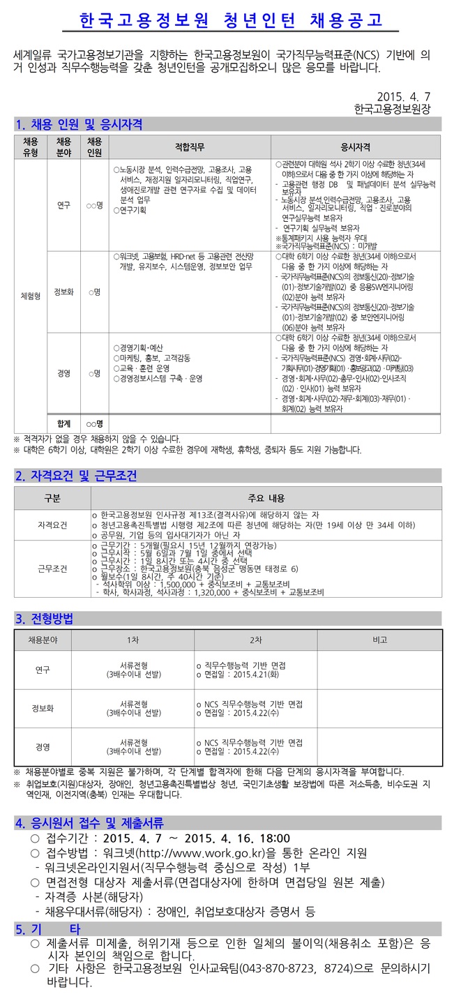 [Çѱ¹°í¿ëÁ¤º¸¿ø] Á÷ÀåüÇèÇü û³âÀÎÅÏ(¿¬±¸/Àü»ê/ÇàÁ¤) ä¿ë°ø°í ( ~4.16)
