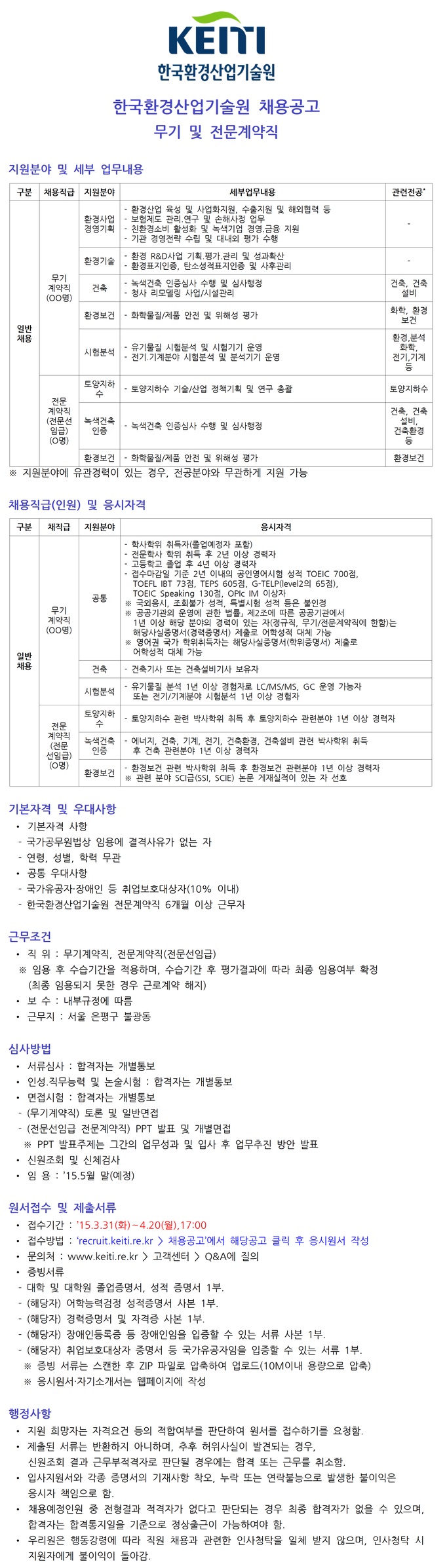 [Çѱ¹È¯°æ»ê¾÷±â¼ú¿ø] ¹«±â°è¾àÁ÷ °æ·Â»ç¿ø(±â¼ú/ÇàÁ¤) ä¿ë°ø°í ( ~4.20)