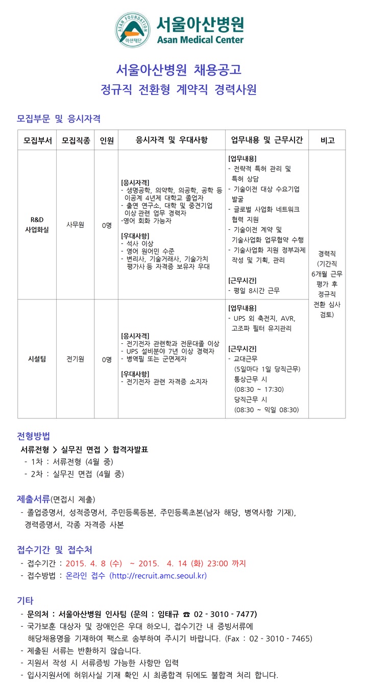 [¼¿ï¾Æ»êº´¿ø] °è¾àÁ÷ °æ·Â»ç¿ø(Àü±â/»ç¹«) ä¿ë°ø°í ( ~4.14)