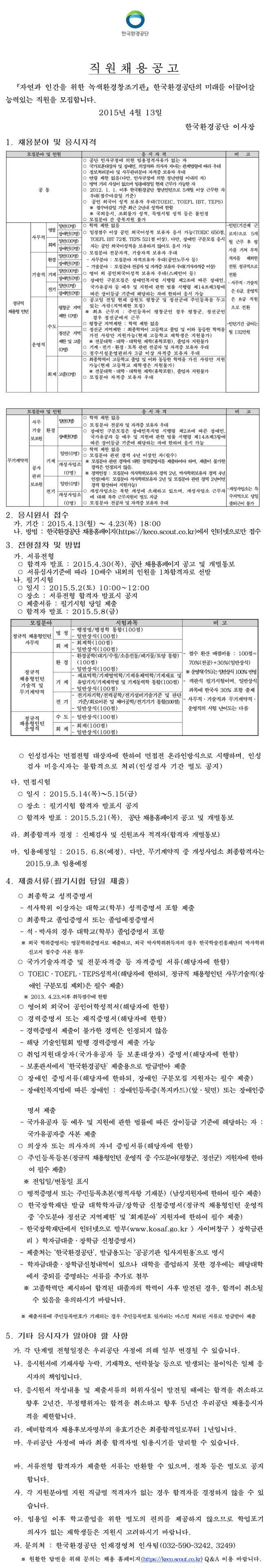 [Çѱ¹È¯°æ°ø´Ü] Á¤±ÔÁ÷ ½ÅÀÔ»ç¿ø(»ç¹«/±â¼ú) ä¿ë°ø°í ( ~4.23)