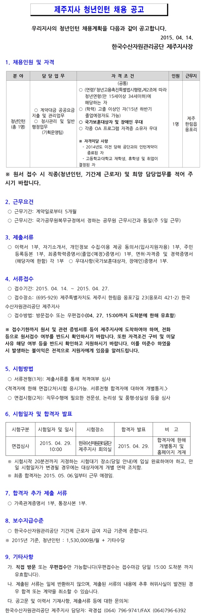 [Çѱ¹¼ö»êÀÚ¿ø°ü¸®°ø´Ü] û³âÀÎÅÏ(ÇàÁ¤) ä¿ë°ø°í ( ~4.27)