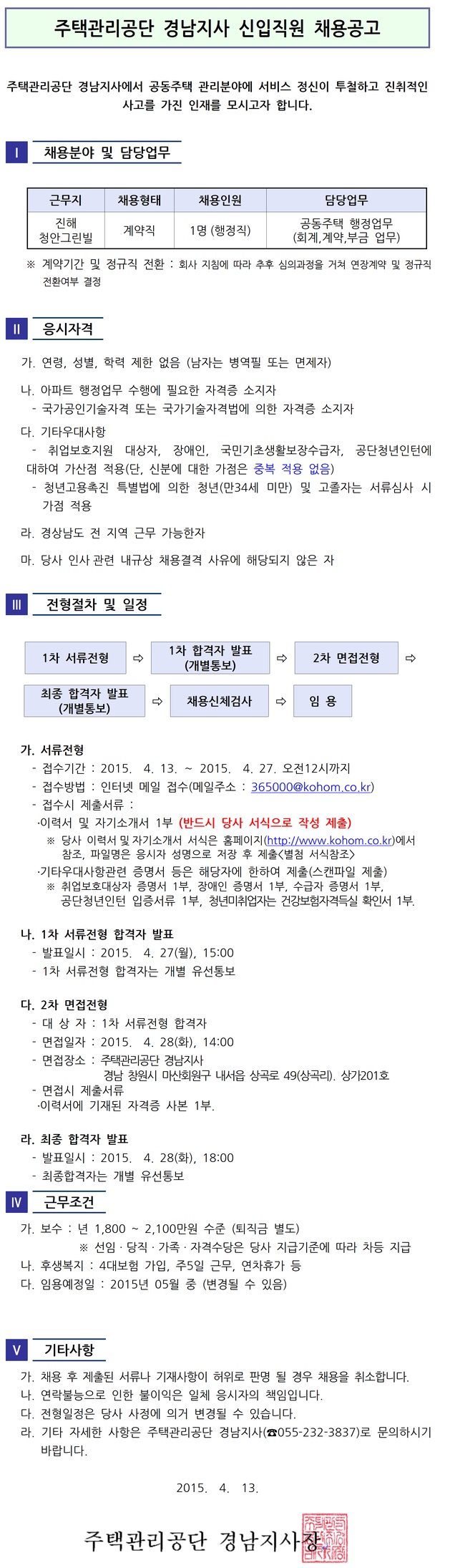 [ÁÖÅðü¸®°ø´Ü] ±â°£Á¦ »ç¿ø(ÇàÁ¤) ä¿ë°ø°í ( ~4.27)