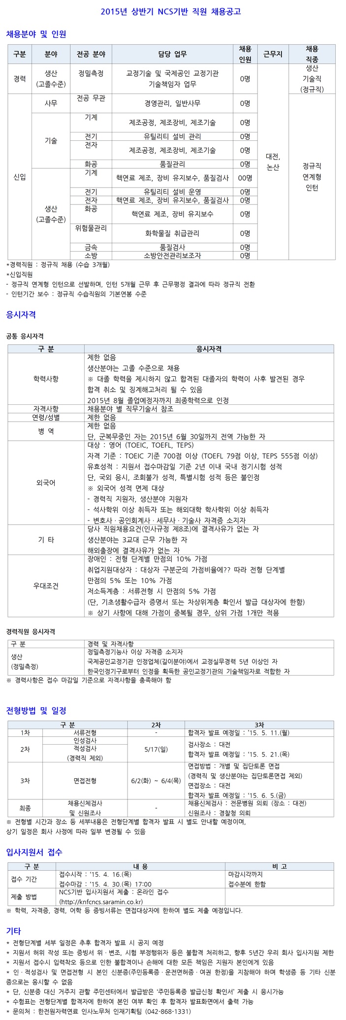 [ÇÑÀü¿øÀڷ¿¬·á] Á¤±ÔÁ÷ ½ÅÀÔ/°æ·Â»ç¿ø(´ëÁ¹/°íÁ¹) ä¿ë°ø°í ( ~4.30)