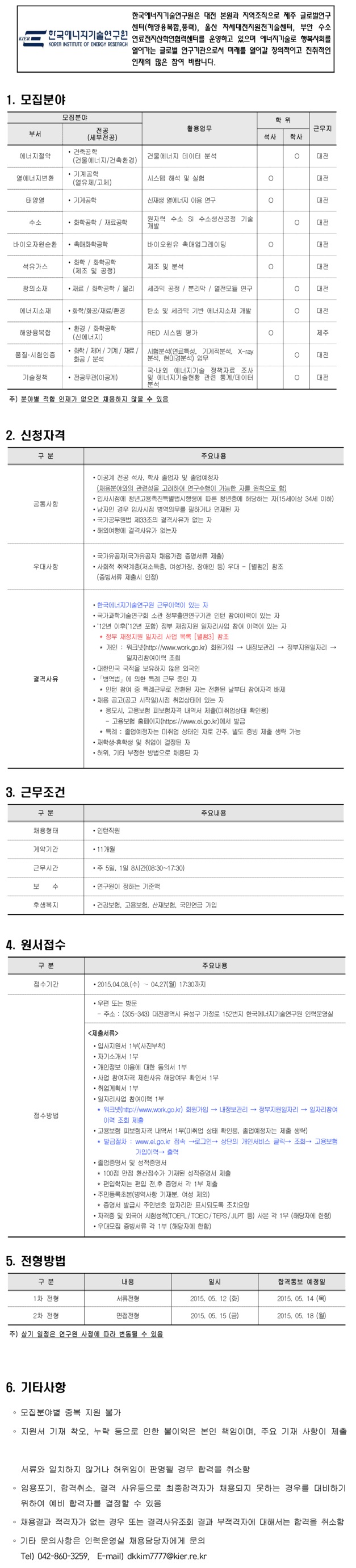 [Çѱ¹¿¡³ÊÁö±â¼ú¿¬±¸¿ø] û³âÀÎÅÏ(±â¼ú/¿¬±¸) ä¿ë°ø°í ( ~4.27)