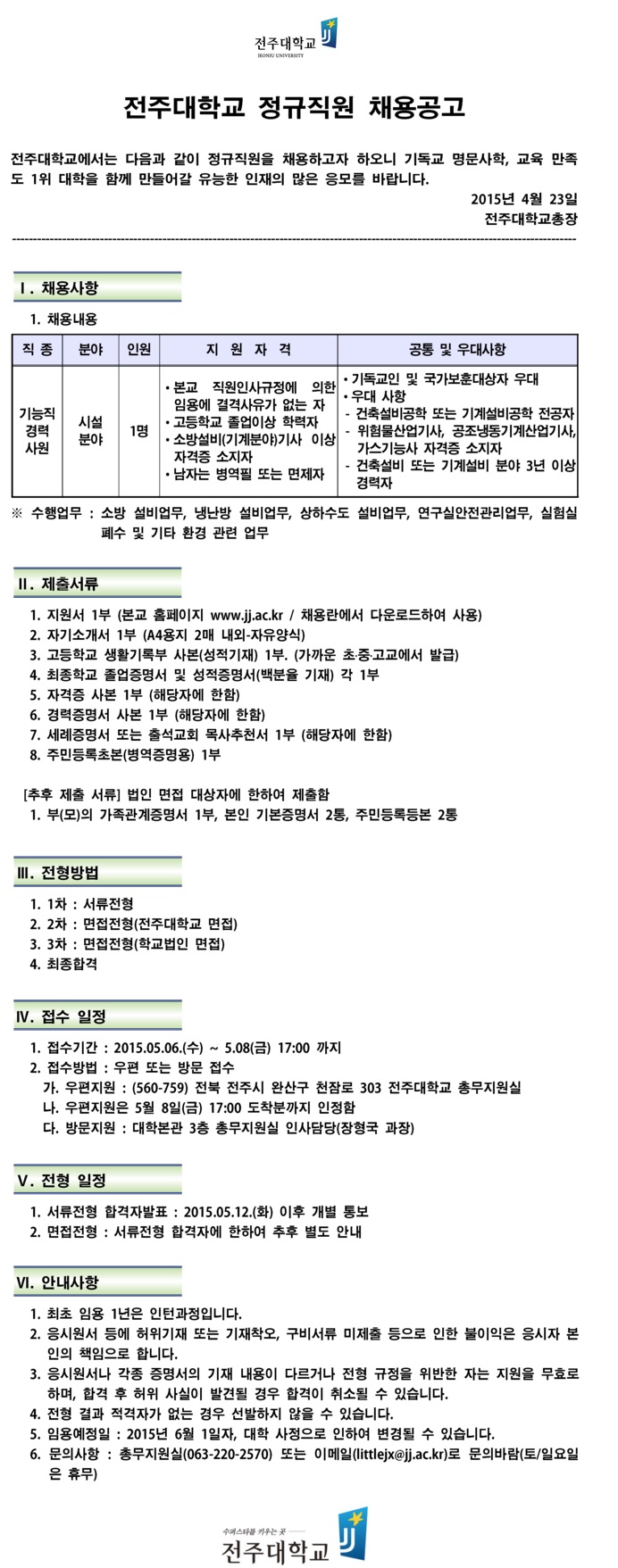 [ÀüÁÖ´ëÇб³] Á¤±ÔÁ÷ °æ·Â»ç¿ø(½Ã¼³) ä¿ë°ø°í ( ~5.08)