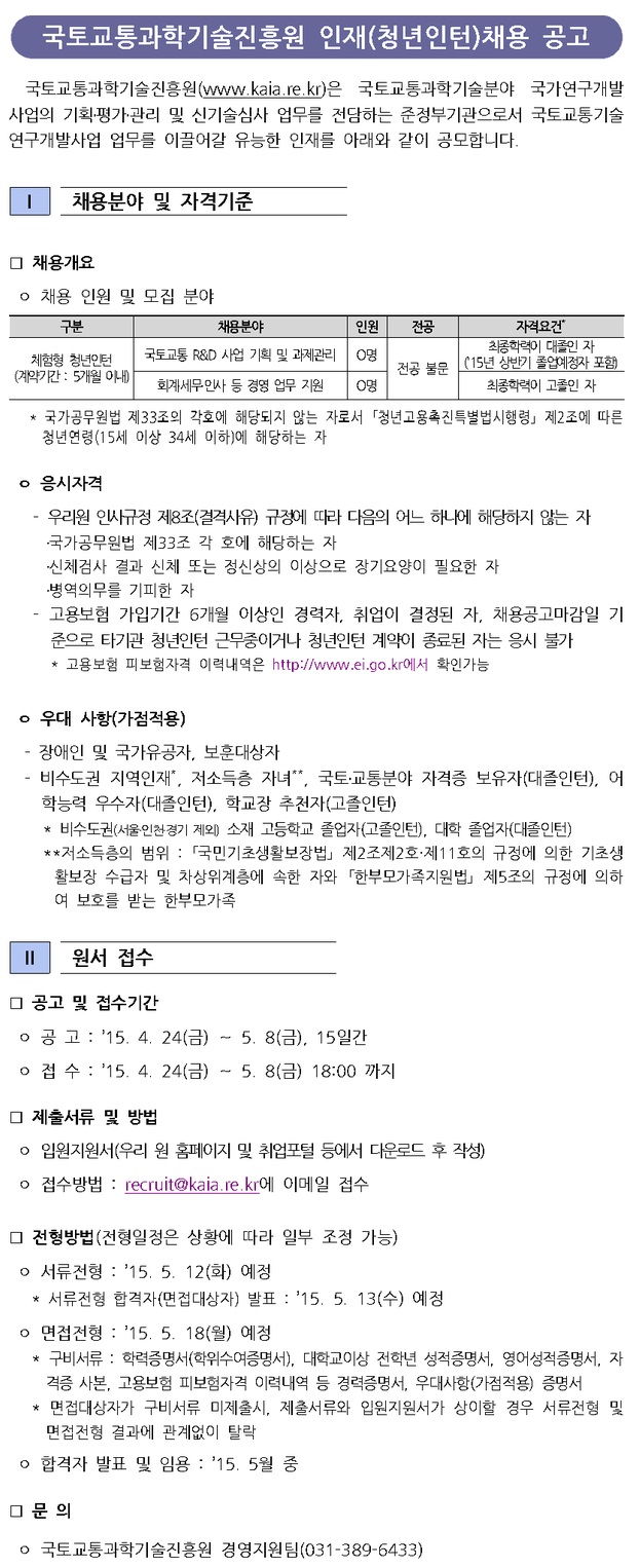 [±¹Åä±³Åë°úÇбâ¼úÁøÈï¿ø] û³âÀÎÅÏ(´ëÁ¹/°íÁ¹) ä¿ë°ø°í ( ~5.08)